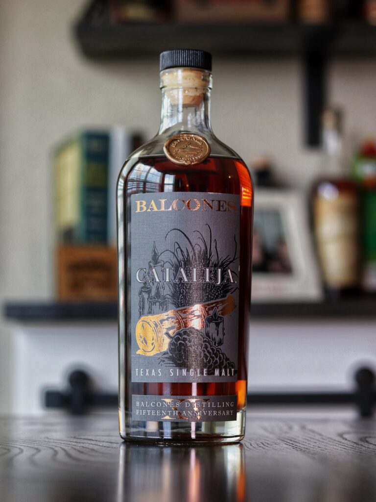 Today, we are reviewing Balcones Distilling’s Cataleja Texas Single Malt. Cataleja was produced in celebration of Balcones’ 15-Year Anniversary. Cataleja was bottled at a generous 118 proof and has a mashbill of 100% Golden Promise Malted Barley. The single malt was released in November 2023 and you can find the full press release in our archive. Let’s get into the full review.