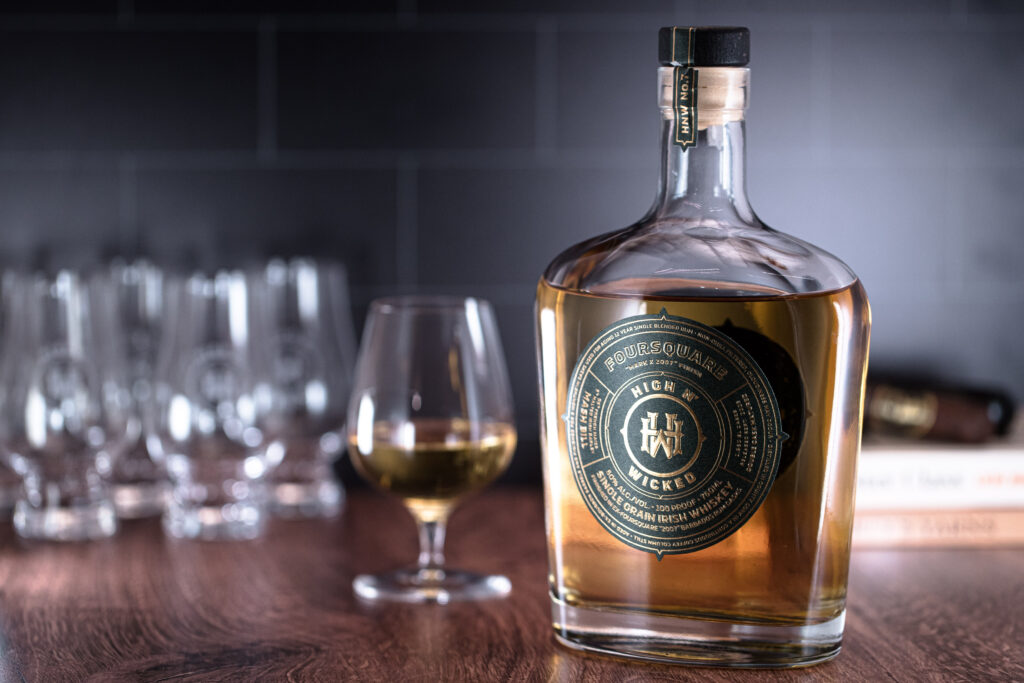 High n’ Wicked, the importer and specialty bottler of exceptional whiskeys, today launched its latest singular limited release: a collaboration with Foursquare Rum Distillery. The new expression, a Single Grain Irish Whiskey, originally distilled in County Cork, Ireland, features a mash bill of 95% French maize (corn) and 5% malted barley. The whiskey was first matured in ex-bourbon barrels and then finished for six months in casks which previously held the award-winning “Mark X 2007” Barbados Rum from Foursquare Rum Distillery in Barbados.