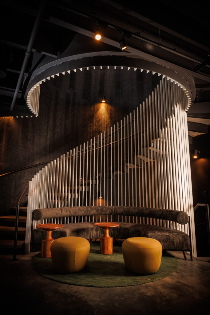 Designed by BOSS.architecture, the Whiskey Sanctuary blends brutalist architecture with functional beauty. The bold structure combines raw materials like steel, glass, and exposed concrete with softer elements, such as rounded furnishings and wood accents, creating an inviting and contemporary atmosphere. At the heart of the space is the Whiskey Church, offering a sacred place to gather and celebrate whiskey. This immersive environment aligns with Laws’ vision of building a whiskey community: “Whiskey is meant to be shared with the people you care about, not something you drink alone in the dark,” says Laws.