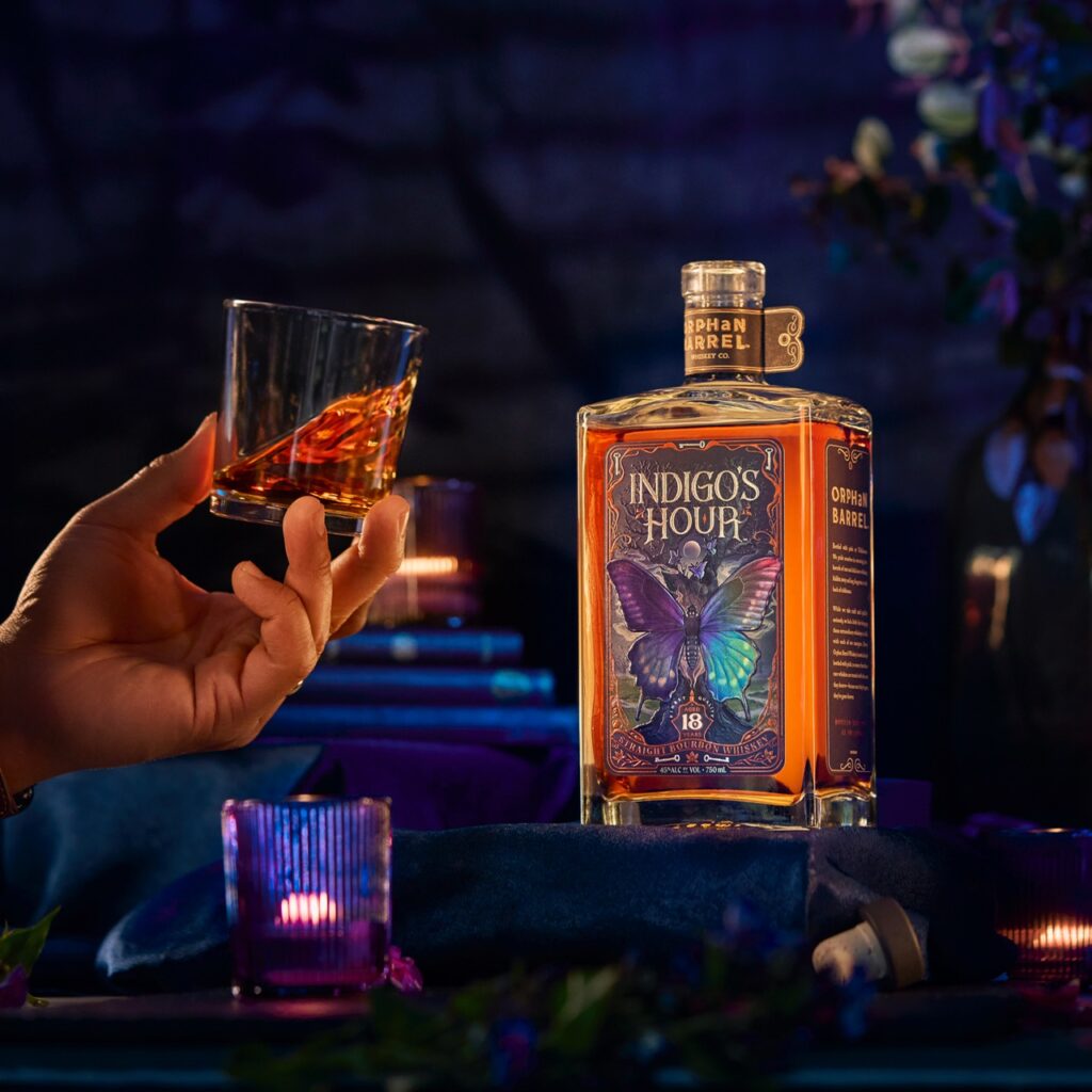 Orphan Barrel Whiskey Distilling Co. presents a new liquid within its collection: Indigo’s Hour Straight Bourbon Whiskey Aged 18 Years, a testament to the artistry of American Whiskey craftsmanship. Drawing inspiration from nature’s most enchanting transitions, Indigo’s Hour symbolizes the delicate balance between transformation and tradition. Much like the lifecycle of a butterfly, which we’ve chosen to represent our whiskey through the bottle’s label design, the bourbon undergoes a metamorphosis of its own, as it journey’s from barrel to bottle with meticulous care and attention to detail. Distilled in Indiana, aged in Kentucky and bottled in Tennessee, each stage of this liquid’s journey contributed to its unique character and complexity.