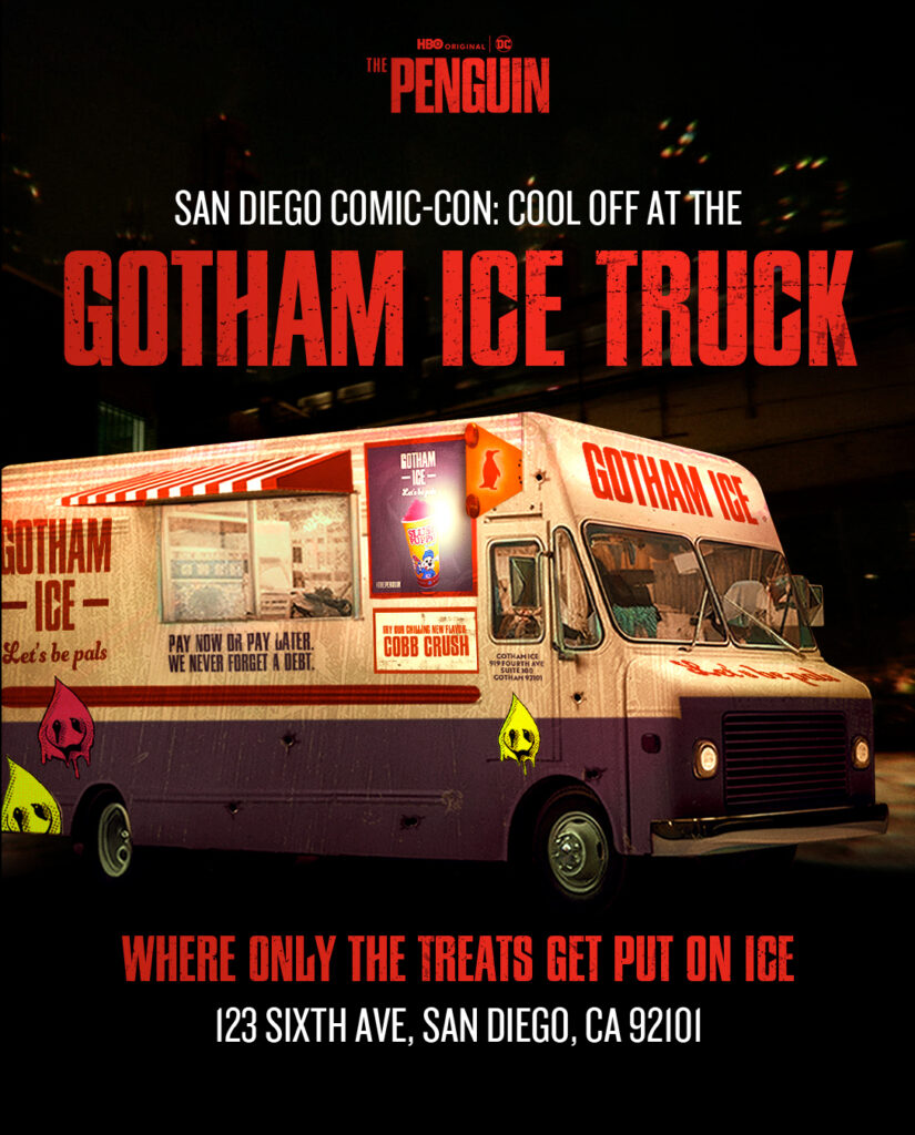 According to Adweek, The Penguin and Max have recreated Gotham’s Iceberg Lounge and unveiled the Gotham Ice Truck in front of the San Diego Convention Center, giving fans a glimpse of Gotham’s criminal underworld. The Iceberg Lounge was first seen in the acclaimed 2022 film “The Batman.” The lounge activation includes exclusive giveaways, an immersive environment, and photo opportunities in front of props like the Penguin’s iconic purple Maserati.