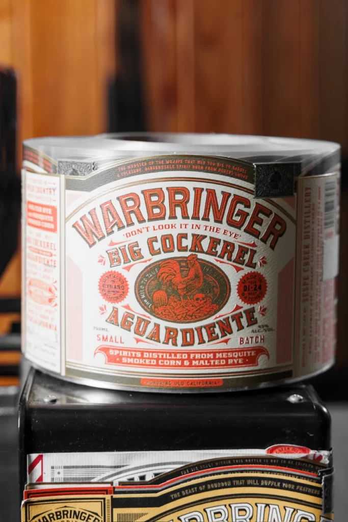 Warbringer Big Cockerel Aguardiente draws inspiration from the historic spirit known as aguardiente, which has deep cultural roots in both colonial Mexico and California’s Gold Rush era. Historically used as a term for locally distilled beverages, aguardiente was once common in early Los Angeles and throughout Alta California.