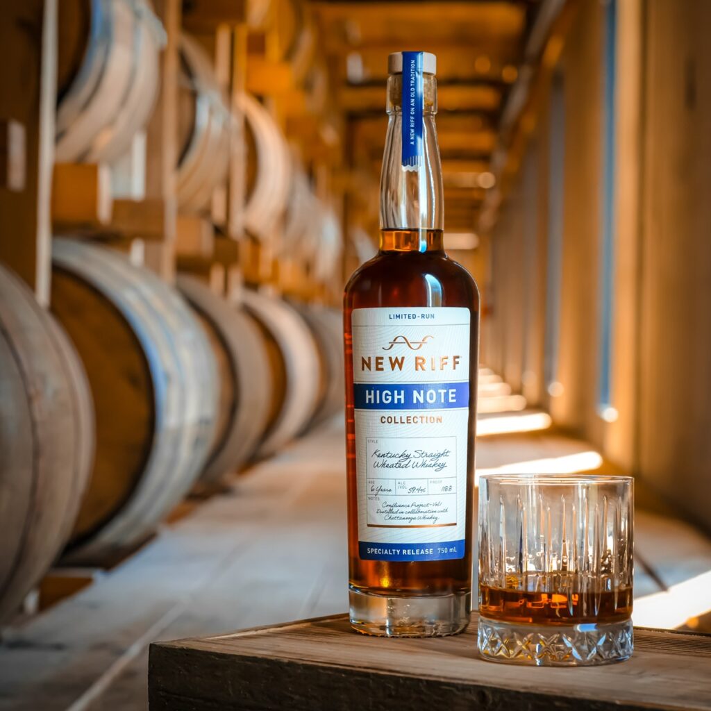 The New Riff Kentucky Straight Wheated Whiskey, part of the distillery’s High Note lineup, is bottled as a collection of single barrels with proofs ranging from 116.9 to 122.8. Each barrel reveals its own flavor nuances while collectively showcasing a bold, layered whiskey with: