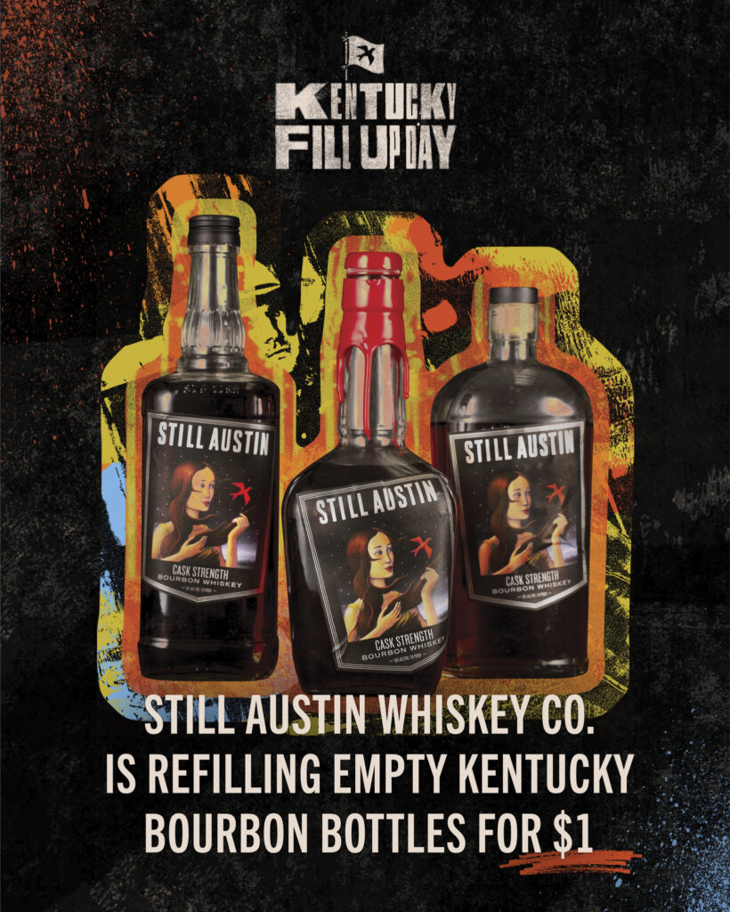 Austin, TX (November 2024) – Still Austin Whiskey Co., the award-winning grain-to-glass distillery based in Austin, Texas, is challenging Kentucky’s long-standing bourbon dominance. On November 23, Still Austin will host its first-ever “Kentucky Fill Up Day,” inviting bourbon fans to bring an empty Kentucky bourbon bottle and refill it with Still Austin Cask Strength Bourbon for just $1.
