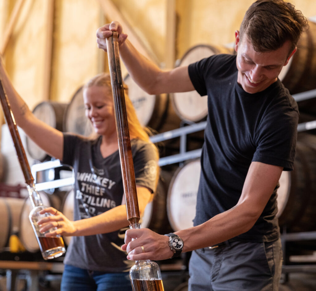 - If guests want to take home their favorite bourbon tasted, they are invited to use a whiskey thief to fill a bottle straight from the barrel. “Whiskey Thief’s spirits are not distributed and are only available on the farm and soon at the Louisville location.” says Zausch.