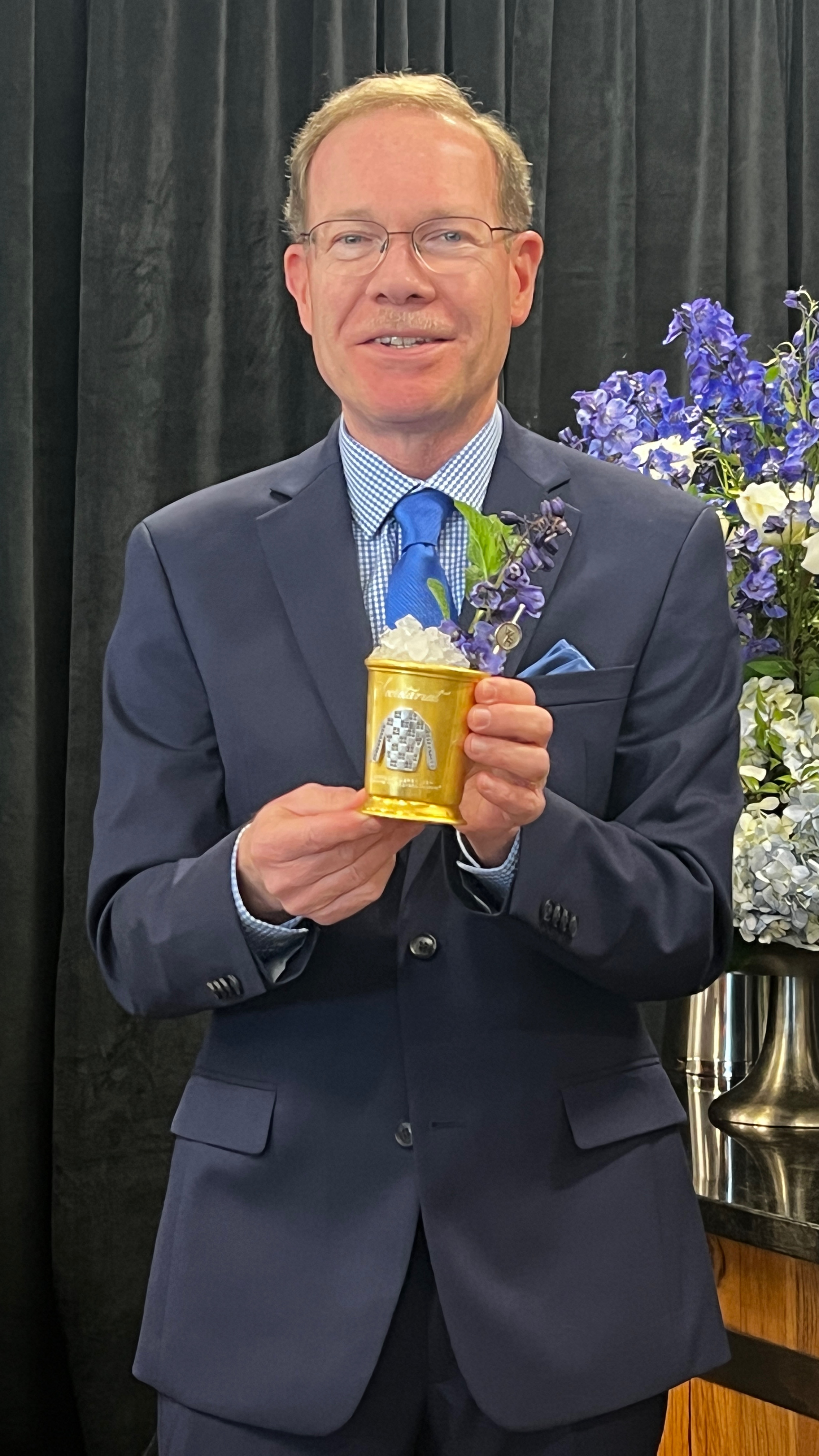 Handmade by Louisville-based jeweler From the Vault, each cup features a design of Secretariat’s famed blue and white checkered silks in sapphires. One side of the cup features an engraving of 1973, the year Secretariat won The Kentucky Derby, and the other features 2023.