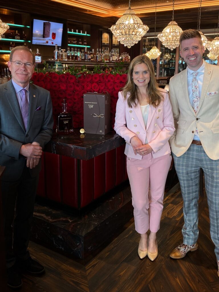 The team at Woodford Reserve announced the release at a press conference at Churchill Downs Monday morning inside Matt Winn’s Steakhouse. The project was over a year in the making with the Woodford Reserve and Brown-Forman Cooperage teams crafting a bespoke barrel with oak staves air seasoned in the Kentucky Derby Winner’s Circle. That couture barrel was used to provide a third aging vessel for the Woodford Reserve Kentucky Bourbon. Only two barrels of this rare whiskey exist in the world, with one used for this special Kentucky Derby 150 release.